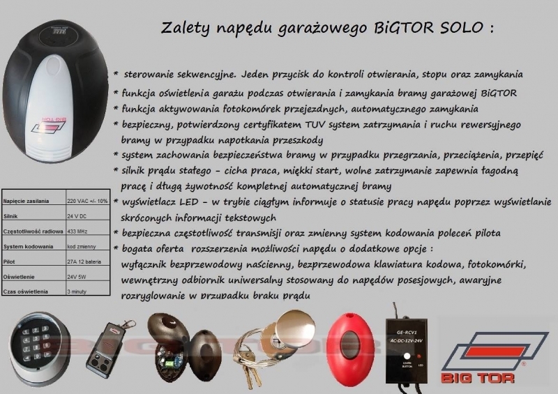 Napęd do bram garażowych BIG TOR SOLO