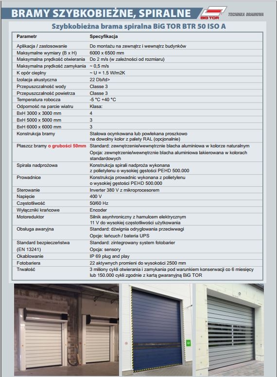 Maksymalna prędkość otwierania - Do 2 m/s (w zależności od rozmiaru) |